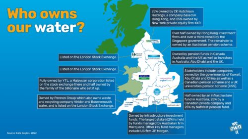 If you want to see who owns our water supply you can check at the Office of Fair Trading website for an answer, but to summarise – Northern Ireland actually owns its water; Spain owns Scottish water supply; but (from here on in the news gets progressively worse); Australia, Singapore, Malaysia and South Korea own England’s water and Canada owns Wales’ water. Hedge funds (of course) are somewhere in there but it is very difficult to find out the detail.